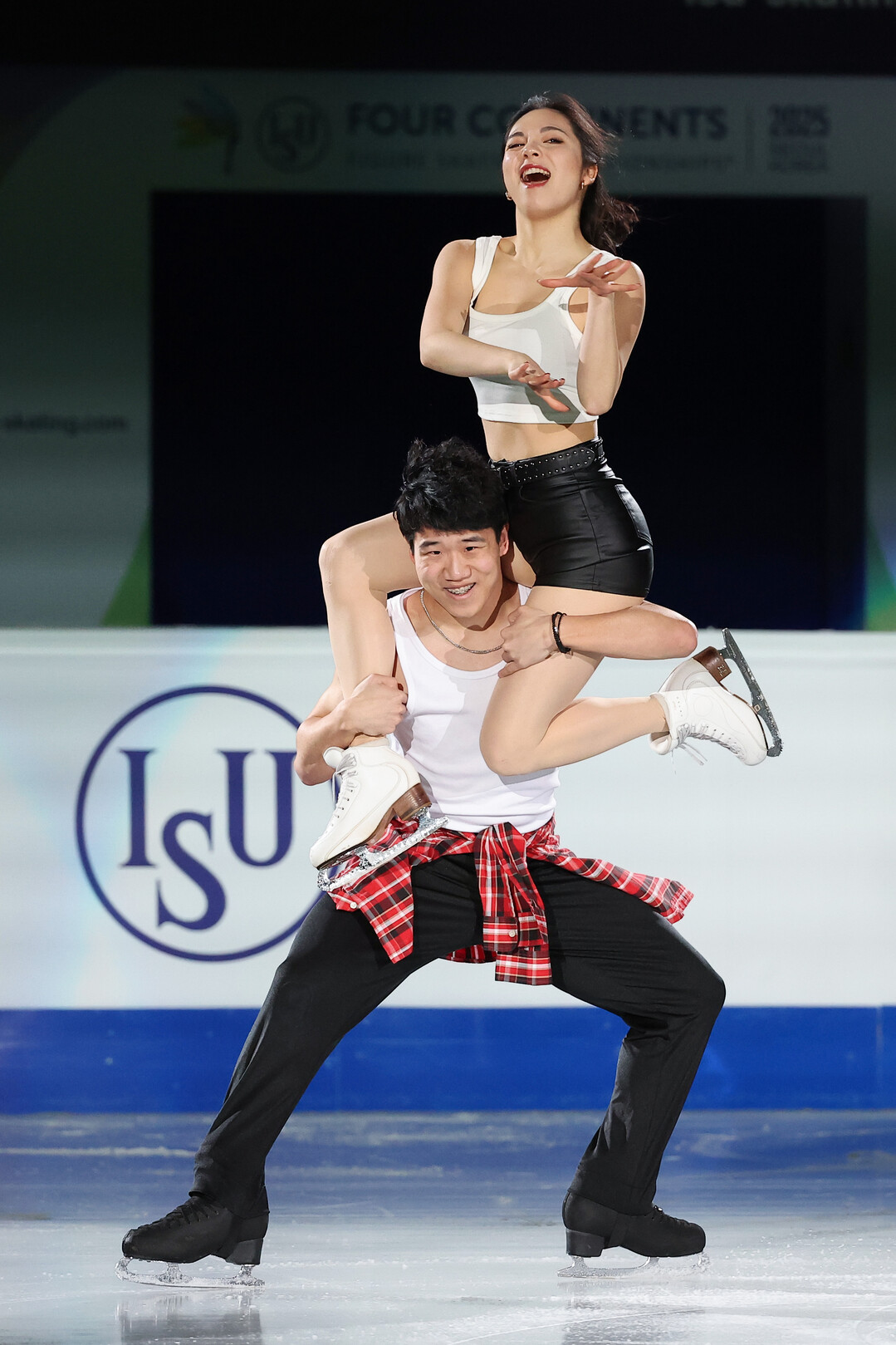 [부자동네타임즈 = 이언금 기자] 임해나(위쪽)와 권예가 23일 서울 목동아이스링크에서 국제빙상경기연맹(ISU) 4대륙피겨선수권대회 갈라쇼에서 연기를 선보이고 있다. 2025.2.23