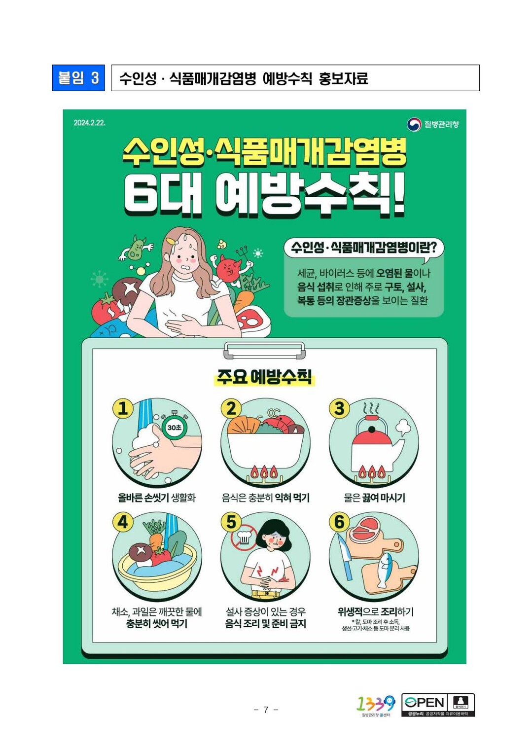 보건소 관계자는 “수인성·식품매개감염병 예방을 위해서 올바른 손씻기, 충분히 조리한 음식 먹기, 안전한 물 섭취 등 감염병 예방 수칙을 준수해야 한다”며 개인 위생을 준수할 것을 당부했다.
