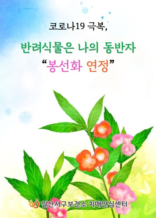 [부자동네타임즈 김인수기자] 고양시 일산서구보건소 치매안심센터는, 코로나19 장기화로 인한 우울감 및 인지적 공백 증대 등의 문제를 반려식물로 해소하는 ‘반려식물은 나의 동반자, 봉선화 연정’ 사업을 오는 3월부터 운영한다.