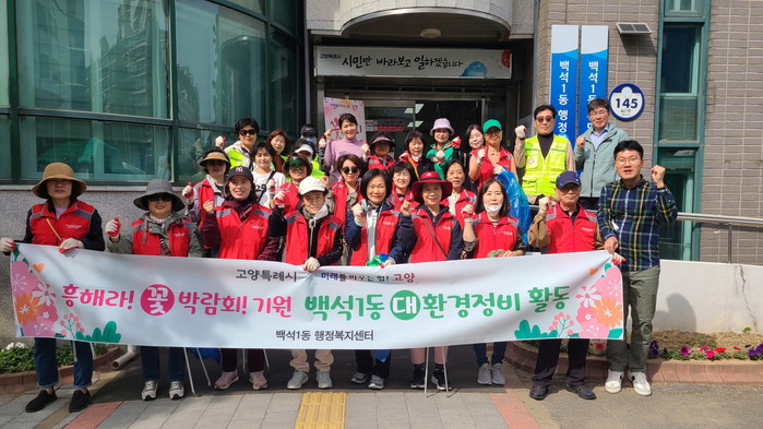 [부자동네타임즈 김인수기자] 고양특례시 백석1동 행정복지센터는 ‘2023 고양국제꽃박람회’를 맞아 방문하는 관람객들에게 깨끗한 도시환경 이미지를 제공하기 위해 환경 정화 활동을 펼쳤다고 25일 밝혔다.