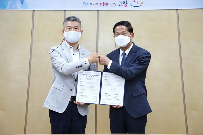 [부자동네타임즈 김인수기자] 고양시(시장 이재준)와 KT(대표이사 구현모)는 전화 한 통으로 간단히 출입 등록하는 ‘안심콜 출입관리시스템’의 효율적인 운영과 전국 확산 보급을 위해 20일 업무협약을 체결했다.