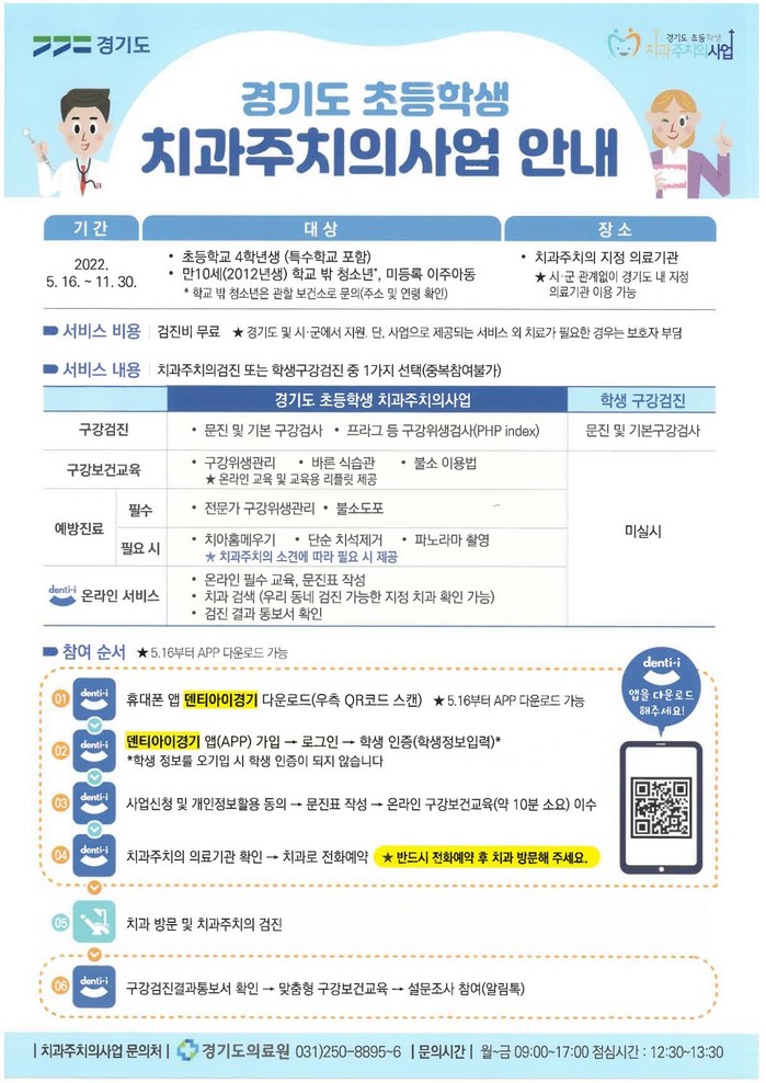 [부자동네타임즈 김인수기자] 고양시 보건소가 5월 16일부터 11월 30일까지 초등학교 4학년을 대상으로 초등학생 치과주치의 사업을 실시한다.