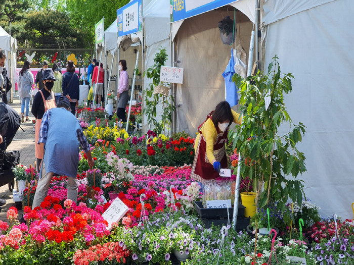 고양안심콜, 발열체크 등 철저한 방역 시스템으로 운영된 ‘고양화훼 직거래장터’는 4월 24일부터 5월 9일까지 일산호수공원과 화정역 광장에서 열렸다. 고양시화훼인연합회 소속 50개 농가가 참여하여 1억 5천여만 원의 고양 화훼를 판매하는 알찬 성과를 거뒀다.