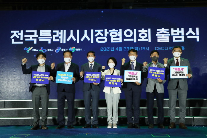 4개 시는 특례시 권한 법제화와 전담기구 설치에 대한 건의문을 작성해 지난 3월 자치분권위원회 김순은 위원장에게 전달한 바 있다. 정세균 전 국무총리와 최재성 전 정무수석과도 면담해 같은 내용을 건의했다. 지난달 23일에는 창원에서 ‘전국특례시시장협의회’ 출범식을 갖고 특례시 권한 확보의 컨트롤 타워를 본격 가동했다.