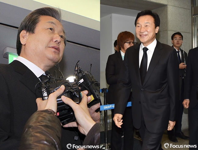△ 고(故) 김영삼 전 대통령의 빈소를 찾은 김무성(왼쪽) 새누리당 대표와 손학규(오른쪽) 전 새정치민주연합 상임고문. <사진제공=포 커스뉴스> |