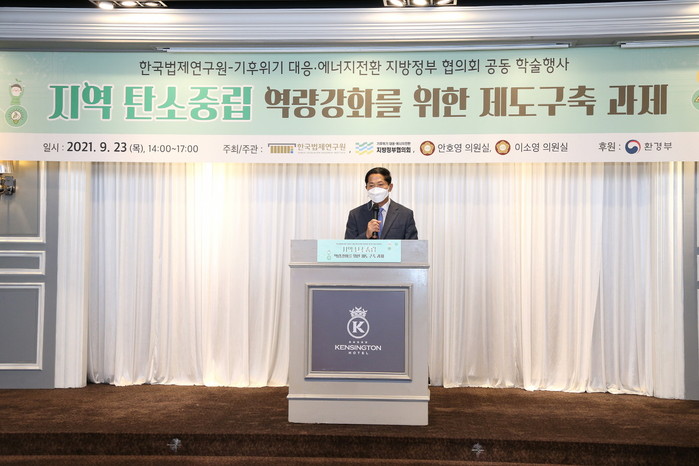 서울 여의도 켄싱턴호텔에서 열린 이번 학술행사는 지역의 탄소중립 역량을 강화하고 실질적 온실가스 감축을 이행하기 위해 한국법제연구원과 국회, 중앙과 지방정부가 함께 지역탄소중립 이행상황을 공유하고 제도 개선 및 제도 구축 협력을 논의하는 자리였다.