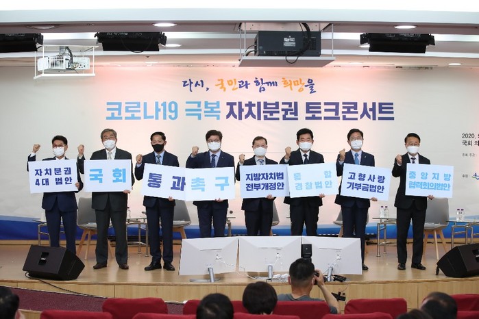 대통령 소속 자치분권위원회와 전국시장군수구청장협의회, 국회코로나19 대책특별위원회와 김진표 . 박광온 국회의원이 공동으로 주최한 이날 행사에는 수원시장과 전주시장, 그리고 고양시장이 참석해 각 도시의 대표적인 코로나19 대응 사례를 소개하고 자치분권 의지를 다졌다.