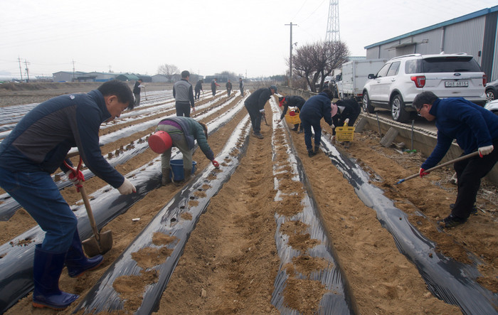 감자심기 행사에는 김학영 시의원, 심은보 농협조합장, 가좌동장, 통장 등 30여명이 참여하여 직접 비료를 살포하고 씨감자 80kg을 파종했다.