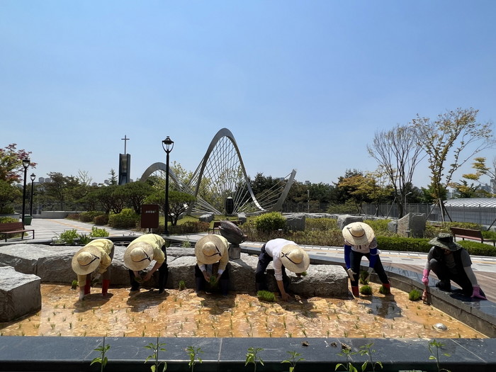 시는 이번 모내기 행사를 시작으로 암센터 직원과 방문객을 대상으로 오는 가을에 벼베기 수확 체험행사도 진행할 예정이다.
