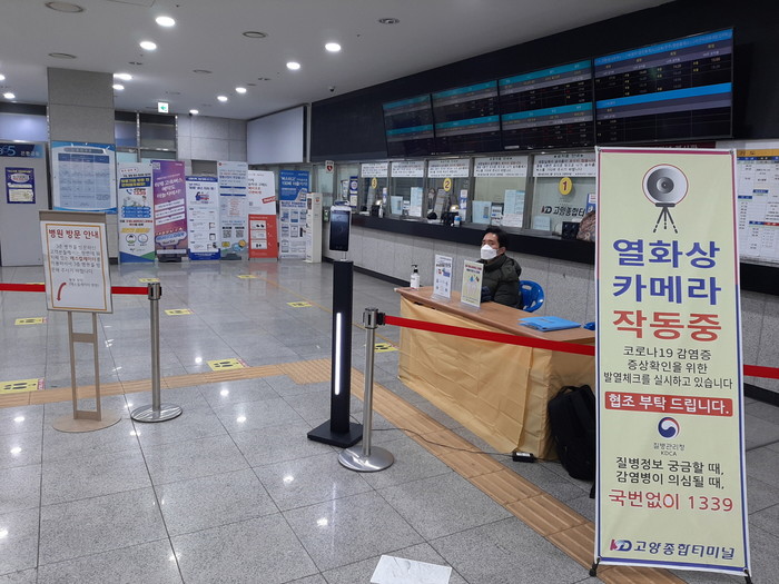 설 연휴는 시민의 고속버스 이용이 증가하기 때문에 방역관리가 어느 때보다 중요한 시기다. 시는 코로나19 장기화로 인해 느슨해질 수 있는 버스터미널 방역관리에 대해 경각심을 고취하기 위해 고양종합터미널과 화정버스터미널에 중점 점검을 실시했다.
