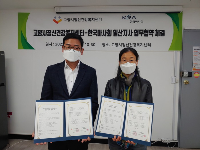 [부자동네타임즈 김인수기자] 고양시정신건강복지센터(센터장 이정석)는 지난 14일 한국마사회 일산지사(지사장 음두성)와 고양시민의 정신건강증진 및 정신건강 문화조성을 위한 업무협약(MOU)을 체결했다고 밝혔다.