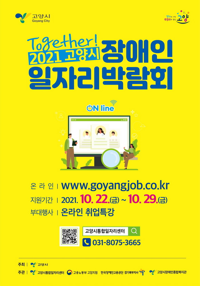 [부자동네타임즈 김인수기자] 고양시가 지난 22일(금)부터 29일(금)까지 8일간에 걸쳐 장애인일자리박람회를 온라인으로 개최한다.