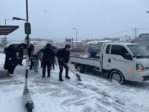 지난 21일 새벽부터는 본격적으로 내린 눈에 인근 상가지역의 상인들과 삼송1동 공무원들은 인도변과 창릉천 세솔교 및 세솔다리, 버스정류장 등 도로 빙판이 예상되는 곳을 꼼꼼히 제설했으며, 시민들도 집 앞 눈치우기에 적극 협력해 크고 작은 안전사고 예방에 힘썼다.