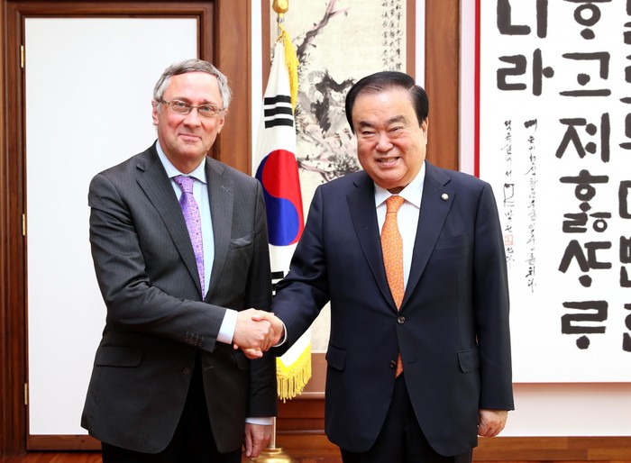 문 의장은 먼저 레스쿠이에 대사의 부임을 축하한 뒤, “한-벨기에 양국은 1901년부터 아주 오랜 기간 동안 수교를 맺어왔고, 다양한 분야에서 긴밀히 협력해 왔다”면서 “특히 이 자리를 빌려 과거 한국전에 약 3,500명의 벨기에 병사를 파병해주신 것에 대해 다시 한 번 감사의 인사를 전한다”고 말했다.