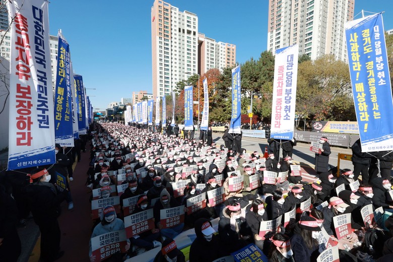 “수백억 피해 발생시킨 차별 행정 철폐”…경기도청 1000여 명 집회