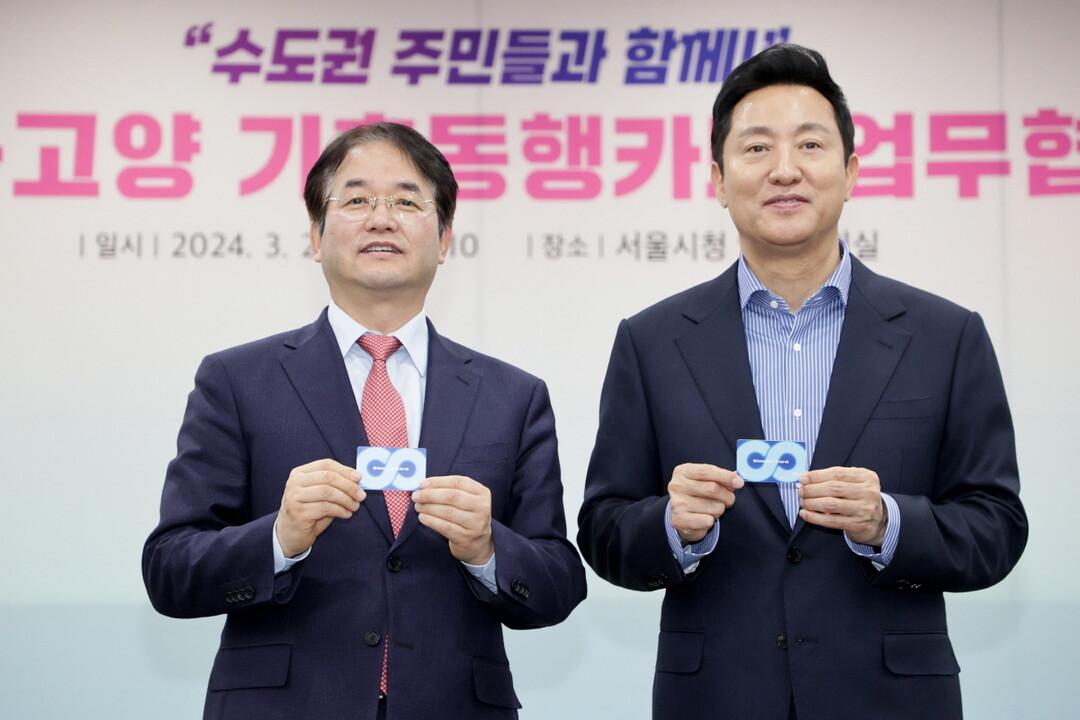 고양특례시는 25일 서울시청에서 이동환 고양특례시장과 오세훈 서울특별시장이 만나 ‘서울시-고양시 기후동행카드 참여 업무협약’을 체결했다고 밝혔다. 이번 협약에 따라 고양시 구간 지하철 3호선, 경의중앙선, 서해선이 기후동행카드 적용범위에 새롭게 포함된다.