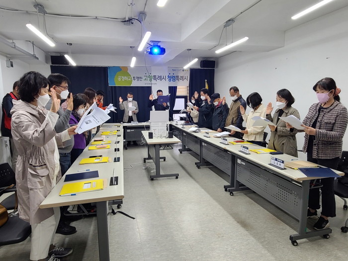 [부자동네타임즈 김인수기자] 고양시 효자동행정복지센터(동장 조재현)는 고양시 청렴 1등 도시로의 도약과 청렴 실천 생활화를 위해 지난 13일 통장협의회 정례회의를 개최하고 ‘2022년 청렴실천 결의대회’를 실시했다.