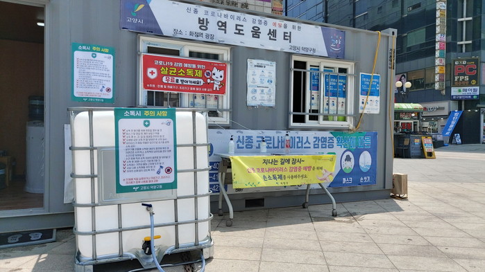 [부자동네타임즈 김인수기자] 고양시 덕양구(구청장 윤양순)는 최근 신종 코로나바이러스감염증(코로나19) 재확산 우려에 따라 화정역 광장과 3개 동 행정복지센터(창릉동, 고양동, 행신3동) 총 4개소에 권역별 소독약 지급소를 16일 설치해 코로나19 종식 시까지 무료 지급을 실시한다고 밝혔다.