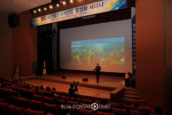 [부자동네타임즈 손권일 기자]전남 완도군은 24일 완도 문화예술의 전당에서 국회의원, 해양수산부 어촌어항과장, 전라남도 정무부지사, 군의원, 각 기관‧사회단체 임원 및 직원 등 500여 명이 참석한 가운데 완도 해양헬스케어산업 활성화를 위한 세미나를 개최했다.