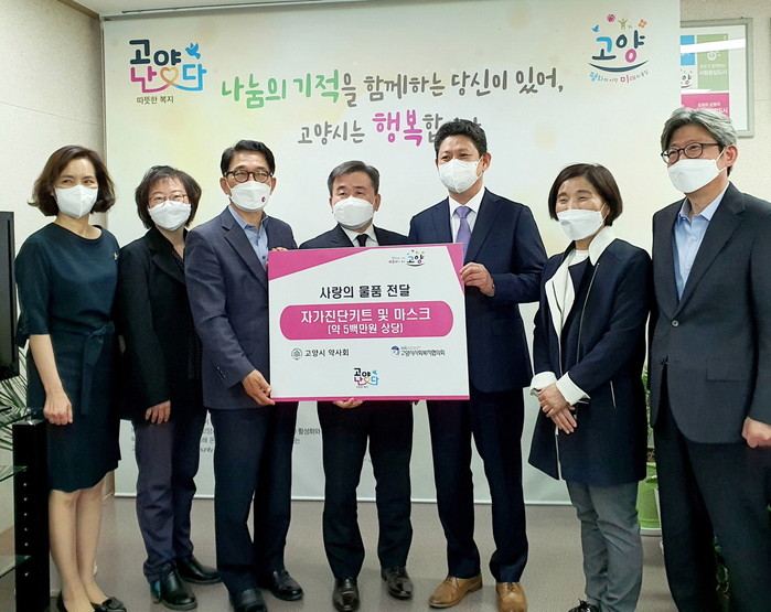 고양시 약사회 김계성 회장은 “요즘 우리생활의 필수품인 자가진단키트와 마스크가 잘 배분되어 어려운 이웃들의 건강과 안전을 지키는데 도움이 되길 바란다”고 밝혔다.