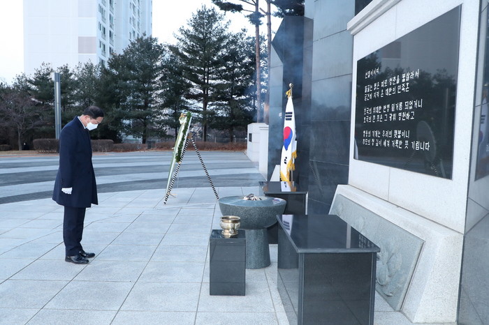 [부자동네타임즈 김인수기자] 이재준 고양시장은 지난 4일 2021년 신축년 새해 업무에 앞서, 고양시 현충공원(일산서구 덕이동 소재)에서 신년 현충탑 참배를 진행했다.