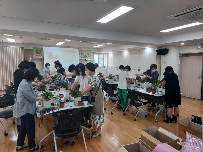 이날 행사에 참여한 주민자치위원 24명과 고양시자원봉사센터 거점 매니저 7명은 원예전문가 유미경 강사의 지도에 따라 화분에 미니정원 30개를 정성스럽게 만들었다. 제작된 화분은 오는 31일 행신3동 주민자치회에서 취약계층 30가구를 직접 방문해 전달할 예정이다.