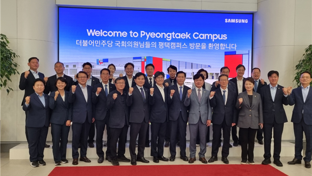 의원 대표단은 삼성전자 고위 임직원들의 환영을 받으며 최첨단 반도체 시설을 견학했다 . 이번 방문에는 삼성을 반도체 제조 분야의 글로벌 리더로 자리매김하는 최신 기술 혁신과 생산 프로세스에 대한 프레젠테이션 , 미래 신산업 , 수출 전망 등에 대한 프레젠테이션이 포함됐다 .