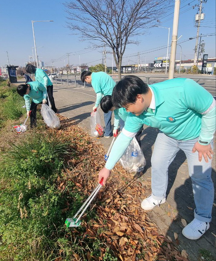 | ▲ 지난 16일 신천지 김포교회 학생들이 사거리 대로변에서 환경 정화 활동을 하고 있다. [사진 제공 = 신천지 김포교회] |