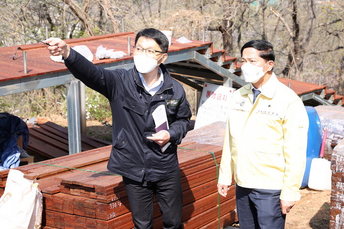 지난 15일에는 이재준 고양시장이 조성사업 현장을 찾아 막바지 공사현장을 점검했다. 현재 목재 데크와 전망기초 공간을 설치하는 중으로, 내달 9일까지 공사를 마무리하고 전망 데크 주변에는 철쭉 동산을 조성할 계획이다.