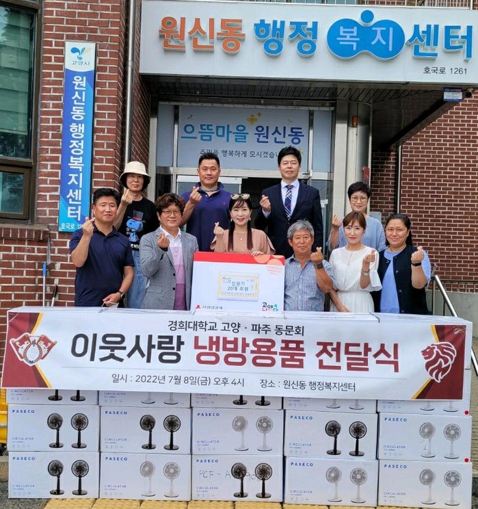 경희대학교 고양·파주 총동문회가 십시일반으로 뜻을 모아 기탁한 선풍기는 원신동 지역사회보장협의체를 통해 어려운 이웃들에게 전달될 예정이다.