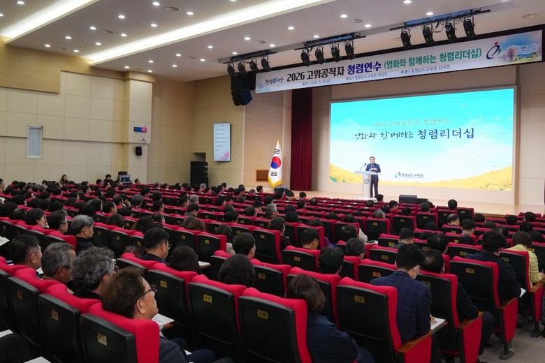 [부자동네타임즈=이교영 기자] 충남교육청(교육감 김지철)은 소통과 공감을 통해 청렴한 조직문화 확산을 추구하고 있으며, 영화와 함께하는 고위공직자 청렴 연수를 개최하고 2026년 청렴도 향상을 위한 출발을 알렸다.