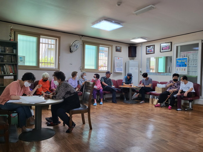 건강마을 만들기는 중산2동 지역사회보장협의체 특화사업이다. 지난 5월에 1차 프로젝트로 약산마을경로당에 건강담은 벽화그리기를 실시했고, 이번 2차 프로젝트는 일산동구보건소 치매안심센터와 협업해 약산마을 어르신들을 대상으로‘찾아가는 치매조기검진’을 실시했다.