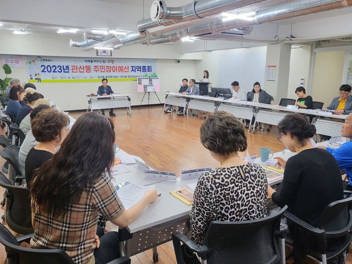 [부자동네타임즈 김인수기자] 고양특례시 관산동은 지난 14일 동 행정복지센터 주민자치회의실에서 주민참여예산 제안사업에 대한 주민 의견 수렴 및 우선순위 결정을 위한 지역총회를 개최했다.