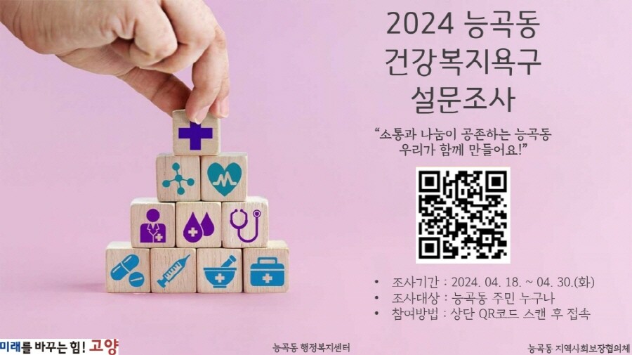 [부자동네타임즈 = 김인수 기자] 고양특례시 덕양구 능곡동 행정복지센터(동장 김미경)는 지난 18일부터 30일까지 2024년 능곡동 마을건강복지계획 수립을 위한 복지욕구조사를 실시한다고 밝혔다.