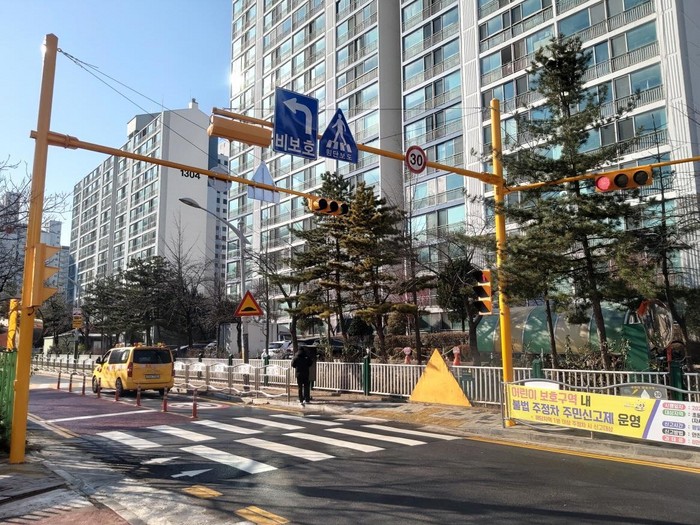 그리고 백양초, 대화초 등 11개 초등학교 인근 어린이보호구역 통학로의 무신호 횡단보도에는 노란신호등을 새롭게 설치하고, 용두초 등 초등학교 인근 91개소 통학로에는 기존 신호등을 노란색 철주 신호등으로 교체하는 등 3개월간의 공사를 지난 12월 18일 모두 마무리했다.