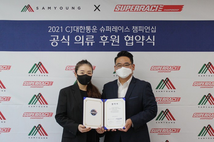 [부자동네타임즈 김인수기자] 2021 CJ대한통운 슈퍼레이스 챔피언십이 더욱 젊고 트렌디하게 바뀐다. 패션과 환경을 사랑하는 패션 기업 ㈜삼영이 대회 공식 의류 후원사로 참여한다. 김동빈 ㈜슈퍼레이스 대표와 황수정 ㈜삼영 대표는 모터스포츠와 패션의 만남을 통한 상호상승 효과를 약속하며 후원 협약서에 서명했다. 양사의 만남은 올해가 처음이다.