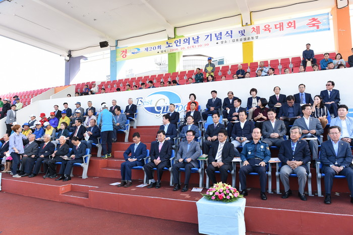 [김포=부자동네타임즈 이영진 기자]제20회 노인의 날 노인잔치 및 체육대회가 지난 6일 김포시 공설운동장에서 유영록 시장을 비롯한 관내 기관단체장과 어르신 1,000명이 참석한 가운데 성황리에 개최됐다.