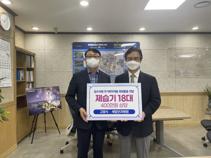 [부자동네타임즈 김인수기자] 고양특례시(시장 이동환)는 지난 25일 새빛안과병원(병원장 박수철)이 침수피해 주거취약계층을 위해 400만원 상당의 제습기를 후원해 전달식을 가졌다고 밝혔다.