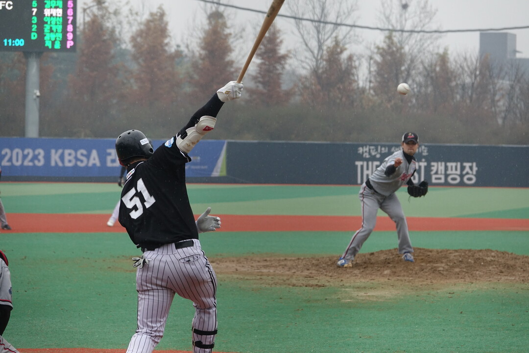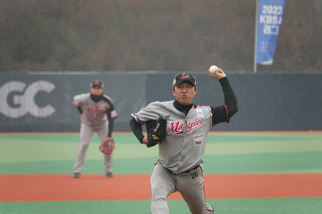 지난 17일 경기도 곤지암 팀업캠퍼스 야구장에서 펼쳐진 ‘2023 KBSA리그’ 결선 2차전에서 성남 맥파이스가 연천 미라클을 16-6으로 크게 물리치며 결선 1, 2차전을 모두 가져가 우승 트로피를 들어 올렸다.
