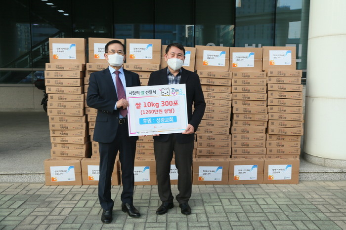 [부자동네타임즈 김인수기자] 고양시 덕양구(구청장 명재성)는 "지난 4일 성광교회(대표 유관재)에서 연말을 맞이해 취약계층을 위한 쌀 10kg 300포(1260만원 상당)를 기부했다."고 밝혔다.