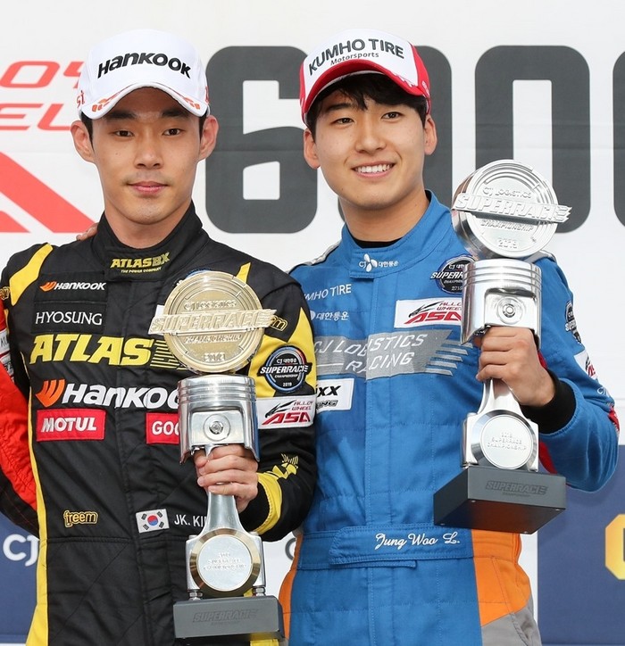 [사진설명] 지난해 슈퍼레이스 챔피언십 슈퍼 6000 클래스 8라운드에서 나란히 포디움에 오른 김종겸(왼쪽)과 이정우의 모습.