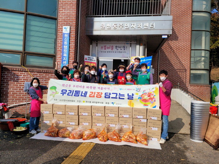 [부자동네타임즈 김인수기자] 고양시 덕양구 원신동행정복지센터(동장 신봉교)는 지난 5일, 새마을부녀회 주관으로 원신동 행정복지센터 앞마당에서 이웃사랑 실천을 위한 ‘사랑의 김장김치 나눔 행사’를 가졌다.