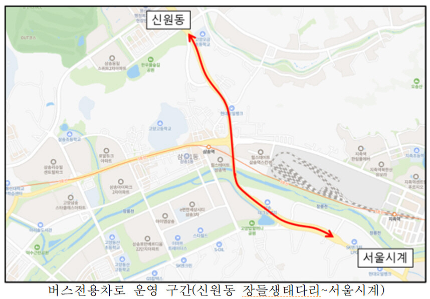 [부자동네타임즈 = 김인수 기자] 고양특례시는 통일로 신원동 장들생태다리~서울시계 2.3km 구간을 20일부터 중앙버스전용차로로 운영할 계획이라고 밝혔다.