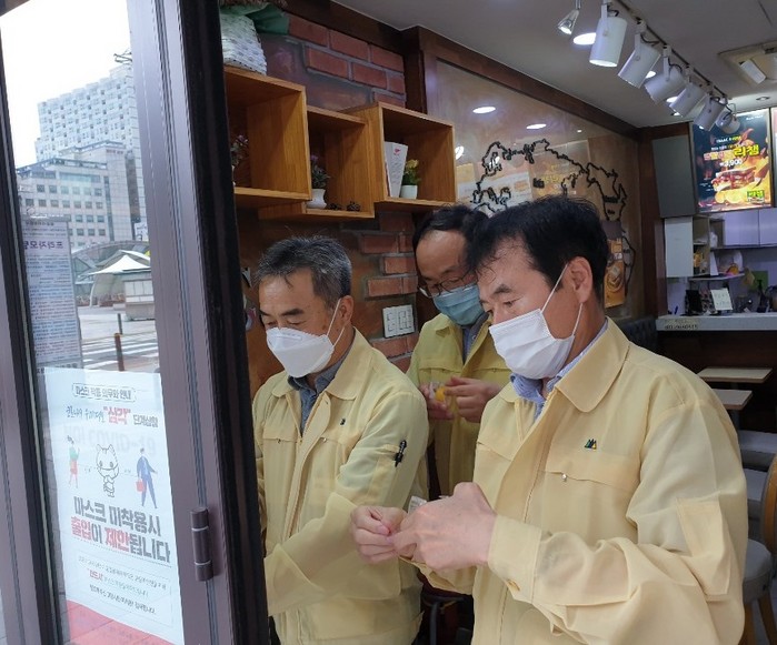 이날 음식점, 커피숍, 대형마트를 방문해 마스크 착용 의무화 포스터를 부착하고, 마스크를 착용하지 않은 이용자는 출입을 제한할 것을 안내하며, 업소별 방역수칙을 철저히 준수할 것을 당부했다.