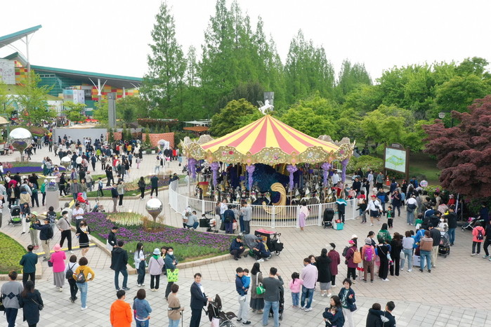 [부자동네타임즈 김인수기자] 고양국제꽃박람회를 찾은 관람객들이 수상 꽃 자전거와, 꽃으로 장식된 회전목마를 체험하고 있다. 꽃 배, 꽃 회전목마, 꽃 열차 등 다양한 즐길 거리는 꽃박람회가 진행하고 있다.