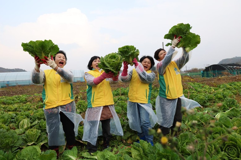지난해 11월 신천지자원봉사단 전북지역연합회가 김장에 사용할 배추를 직접 뽑고있다.