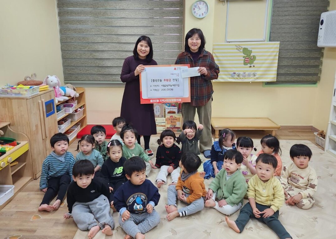 성금은 금빛하늘어린이집에서 바자회를 열어 얻은 수익금으로 마련됐으며, 경기사회복지공동모금회를 통해 중산2동 취약계층을 위한 사업에 사용될 예정이다.
