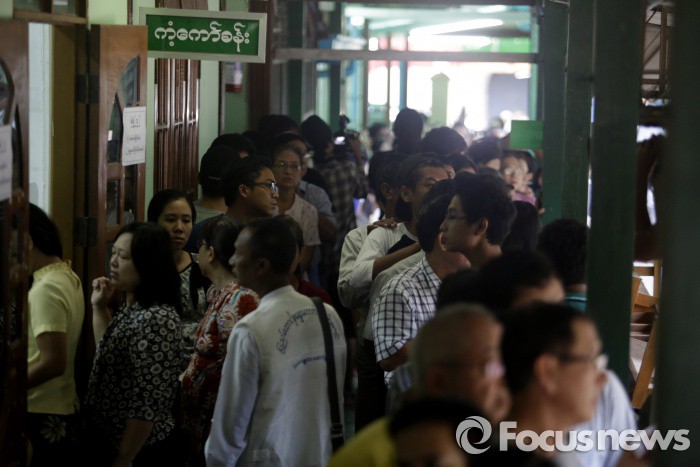 | △ (양곤/미얀마=신화/포커스뉴스) 이달 8일(현지시간) 미얀마 양곤 시내에 설치된 투표소에서 시민들이 투표를 하기 위해 줄을 서서 대기하고 있다. 신화/포커스뉴스 photo@focus.kr |