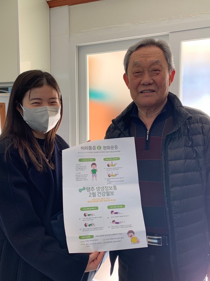 장중환 행주외1 경로당 회장은 “이번 건강월보는 평소 어르신들의 가장 큰 건강고민거리인 허리통증에 도움이 되는 내용으로 구성되어 경로당 어르신들에게 도움이 많이 되었고 다음 발간호가 기대된다.”라고 말했다.