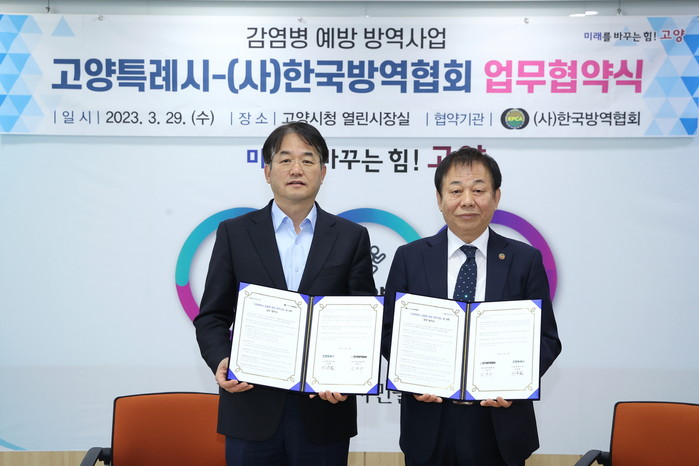 [부자동네타임즈 김인수기자] 고양특례시(시장 이동환)는 (사)한국방역협회와 감염병 예방 방역사업에 대한 상호지원과 협력에 관한 사항을 규정하는 업무협약을 3월 29일 고양시청에서 체결했다.